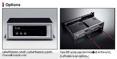 - Two RF modules can be installed in a unit for a ?2Ch in 1box configuration? (Optional UR-FR5000/UR-FR6000 required)