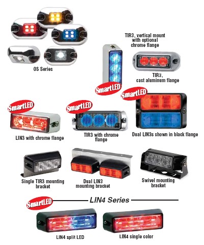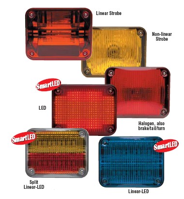 Compact size, linear strobe,snap-in halogen, surface mount LED, LED back-up/